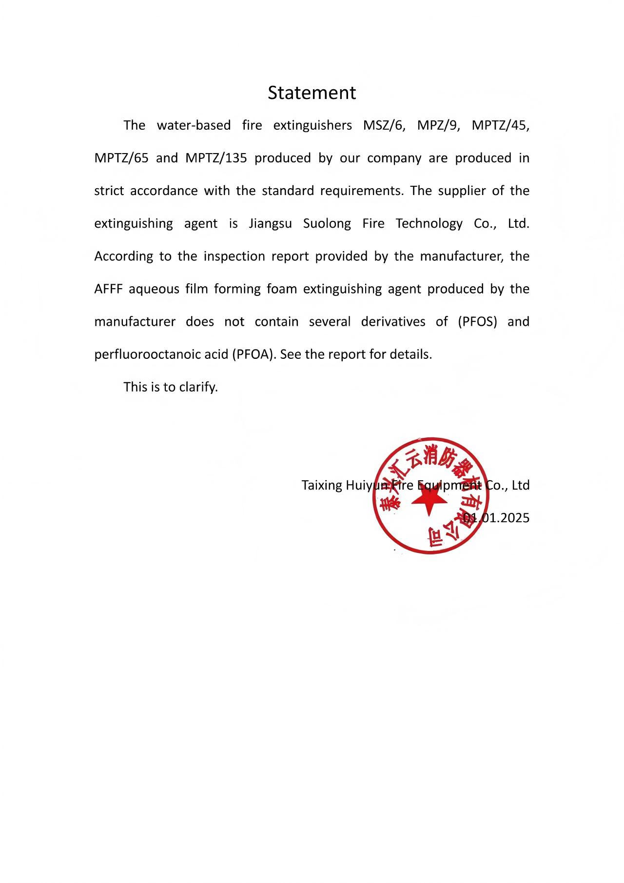 | KILL FIRE Letter - PFOS-PFOA Content for Foam Extinguisher | 03/12/2025 | View |